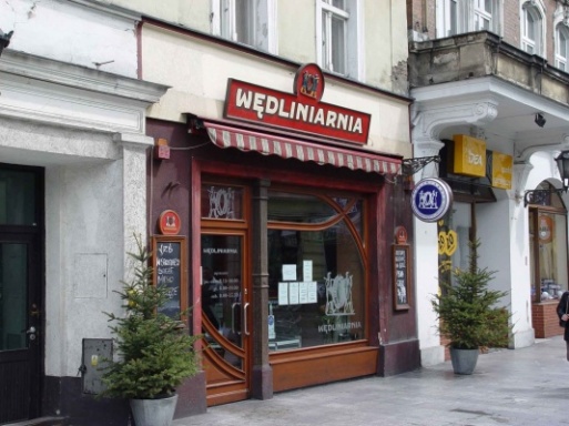 Signage & Wayfinding design by Ryszard Mańczak relizacja szyldu z dawnych lat 20 IX wieku według grafiki DIAGRAM Michał Cierkosz dla sieci sklepów Wędliniarnia z Leszna